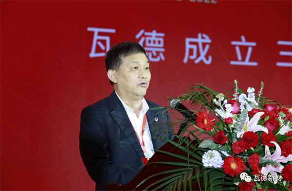 董事長謝富強首先講話,深情感謝各方賓朋。他簡要回顧30年風(fēng)雨歷程。一個十幾人的小作坊,在艱苦條件下,依靠團結(jié)奮斗的精神,誠信經(jīng)營的理念,不斷創(chuàng)新的勇氣,由小到大,由弱到強,由地面到門窗再到屋面,無論市場如何變遷,始終堅持不懈地打造自已品牌的堅強信念。將一支半手工作業(yè)的生產(chǎn)線打造成如今高端智能國際化的生產(chǎn)力量。實現(xiàn)了“瓦冠神州,德行天下”原初的奮斗目標(biāo),并將它確立為瓦德人躬身踐行的核心價值和企業(yè)永遠的座右銘。