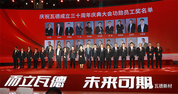 來自于全國各地的經(jīng)銷商、代理商、行業(yè)協(xié)會代表、親朋好友以及企業(yè)員工500余人齊聚一堂,共享瓦德新材集團30年的慶典盛況。