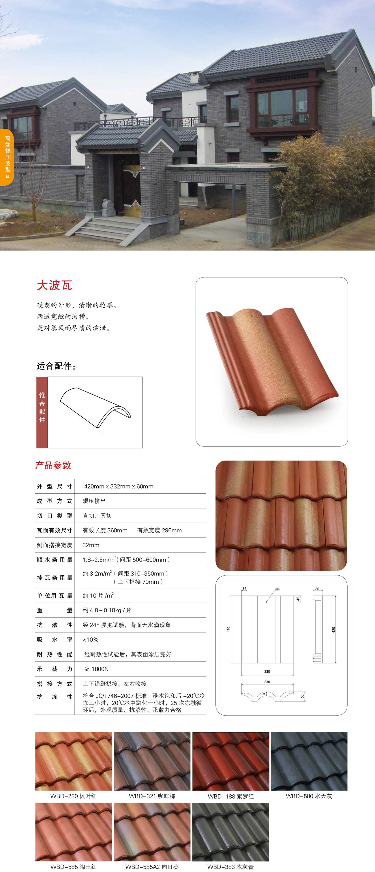 當前位置:網站首頁>>產品介紹>>瓦德彩色混凝土瓦>>瓦園系列波瓦